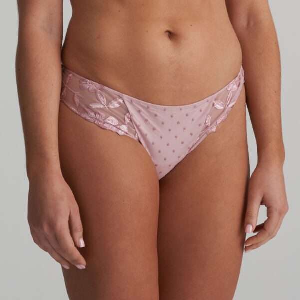 Sensuele string met rijke bloemenbroderie en frivole nopjestule.