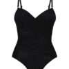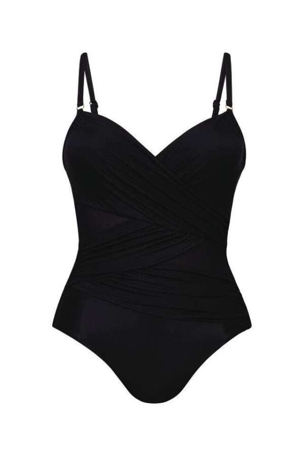 Het Jinelle-model presenteert zich als een elegante strandvormer. Het is gemaakt van innovatief Shape Satin-materiaal en biedt slim ontworpen figuurvormende eigenschappen. De verfijnde snit, aangevuld met ruches en tule-inzetstukken, flatteert het vrouwelijke silhouet. Een bijzonder hoogtepunt is de geslaagde mix van matte en glanzende materialen. Ideaal voor zelfverzekerde vrouwen die er stijlvol uit willen zien op het strand of bij het zwembad.