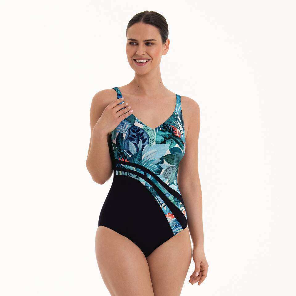 Met het prothesebadpak Dirban is een geslaagde veschijning op het strand gegarandeerd! De gewelfde lijnen aan de voorzijde maken de taille optisch slanker, terwijl de print zorgt voor een echte blikvanger. Het badpak heeft verstelbare schouderbandjes, vormende cups en een elastische functionele voering aan de voorzijde.