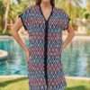 De Morella strandjurk maakt indruk met een puristisch zwart-wit patroon. Dankzij een lange split middenvoor, een overgesneden schouder met korte mouwen en een uitgebreide V-hals heeft het de beste bewegingsvrijheid en een casual touch.