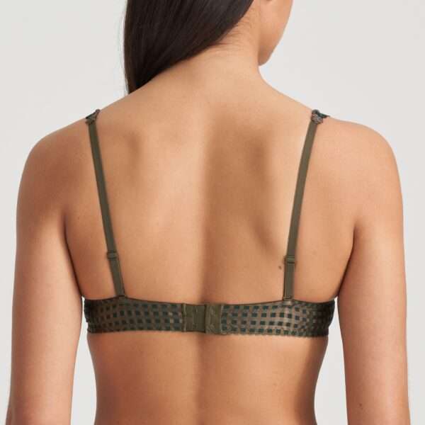 Voorgevormde mousse cup met balconnetbelijning. Het stukje tussen de borsten komt hoger. Je kunt de schouderbandjes recht of om de hals dragen (met uitzondering van de kleur Tiny Iris).