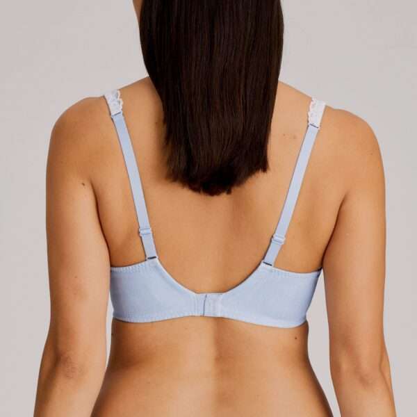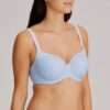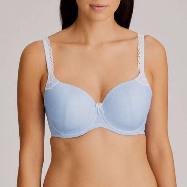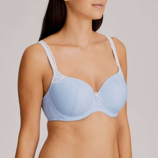 Gladde bh met mousse cups en een stoere denimlook. De schouderbandjes zijn versierd met trendy retrokant, het middenvoor met een fijn strikje.