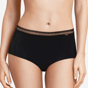 Menstruatie Tailleslip: Garandeert tot 8 uur lekvrije beveiliging (afhankelijk van de stroomintensiteit) Middelmatige/sterke absorptie Gemaakt van ultrazacht gerecycled breisel Door hitte gesealde afwerkingen rond de dijen voor totale onzichtbaarheid onder kleding Stoffen met het label OEKO-TEX® STANDARD 100 en zonder nano-zilverdeeltjes Tip: Neem uw gebruikelijke maat!