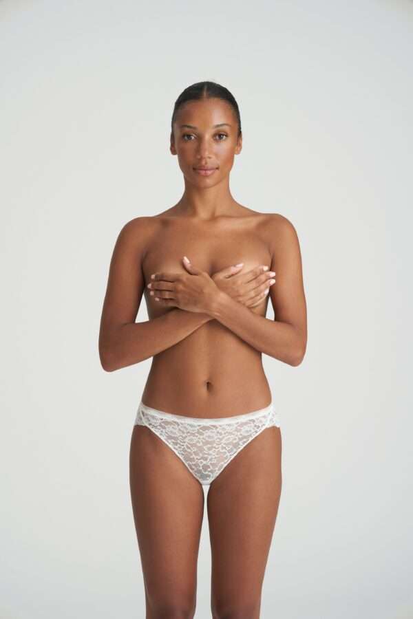 Romantisch, speels en comfy: met dit kanten slipje in natuur voel je je zelfverzekerd en sexy.