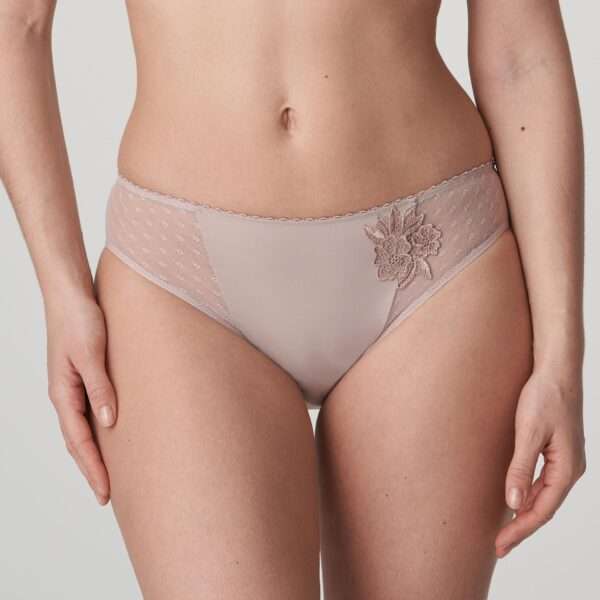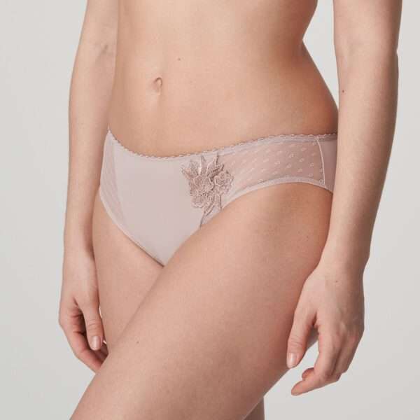 Elegant en comfortabel rioslipje met transparante bolletjestule aan de zijkant. De mooie bloem in guipure vooraan geeft het een romantische touch.