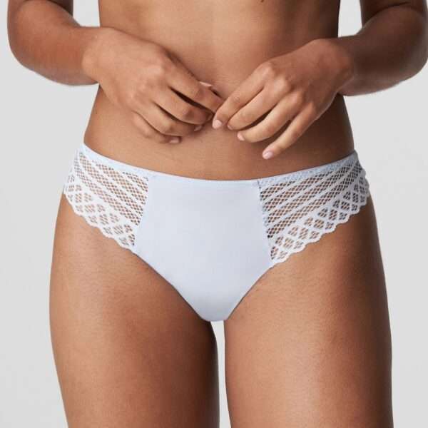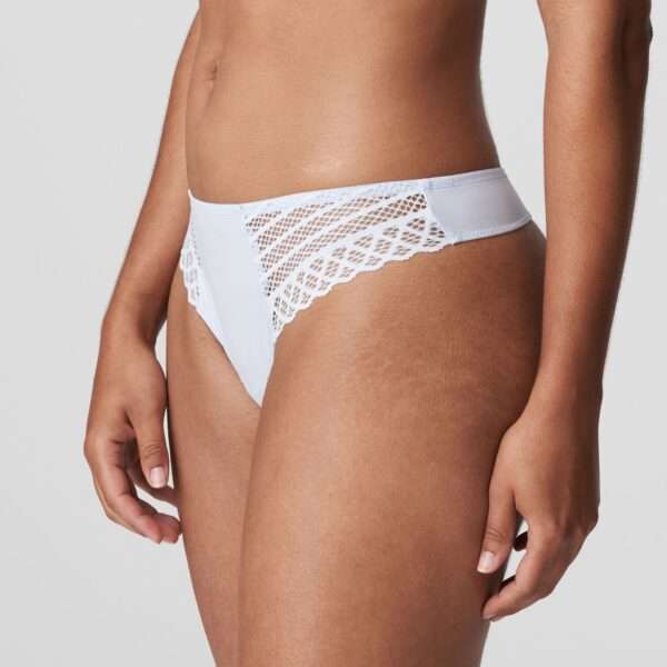 String gemaakt van een glad stofje, met geometrische kant aan de benen.