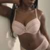 Deze beugelbh heeft een fantastische pasvorm. Het gesloten stofje in combinatie met geometrische kant aan de bovencups past perfect rond je lichaam. Met schouderbandjes van strakke kant en een roségouden juweeltje middenvoor. Minimalistisch en sensueel!
