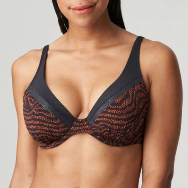 Hippe bikinitop met drie verschillende animalprints. De triangelcups zijn verstevigd met mousse.