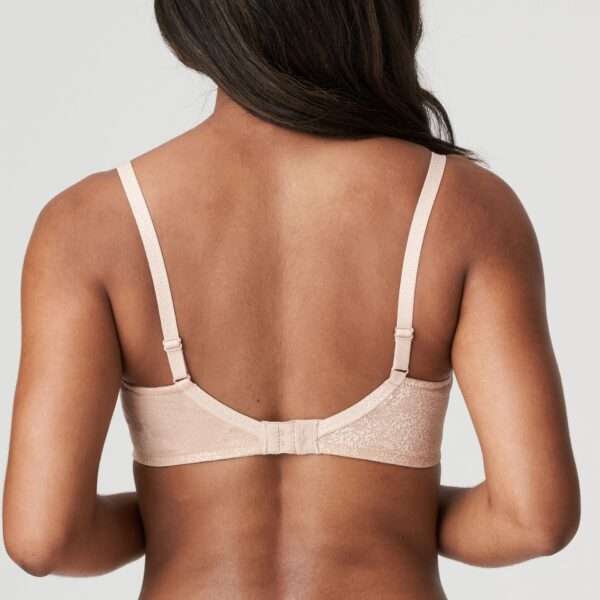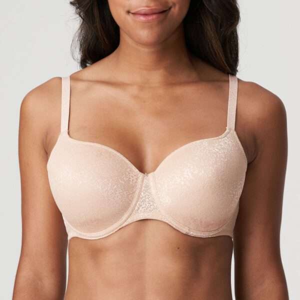 Trendy T-shirt bra met hartvormige mousse cups, overtrokken met zeer fijne stretchkant. De stof speelt met het licht en heeft een subtiel snakeskin-motief. De straps zijn zeer dun.