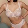 Driedelige beugelbh met een unieke pasvorm en een moderne, luchtige look. Met subtiel glanzende broderie in de cups en schouderbandjes.