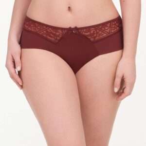 Hotpants van retrokant en glanzende stof met een kantprint. Achteraan bestaat het volledig uit kant: sexy!
