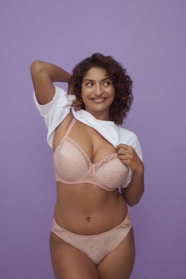 Silky Dreams is een dromerige abrikoostint met een vintage kantprint. Subtiel glanzend en onzichtbaar onder wit.