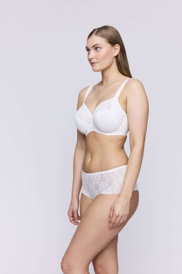 De gedubbelde ondercups geven grotere cupmaten een comfortabele lift, het zijstukje centreert je boezem voor een rond silhouet.