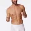 Witte, nauwsluitende herenshort, uit de populaire SCHIESSER-serie “95/5”, met een aangenaam zachte, comfortabele tailleband aan de binnenkant in zwart en wit – rand goed zichtbaar!, optimaal draagcomfort dankzij 95% natuurlijk biologisch katoen en 5% elasthaan, comfortabele beenuitsnijdingen, van een perfect passende, elastische single jersey kwaliteit