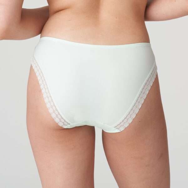 Glad rioslipje in een stof die aanvoelt als een tweede huid. Een kantje op de billen maakt je look compleet.
