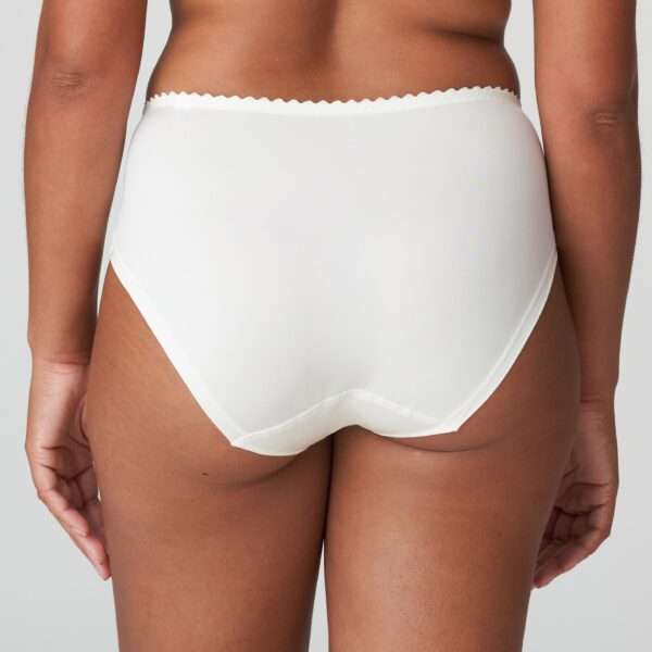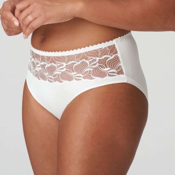 Sensuele tailleslip in gesloten stof, versierd met transparante broderie.