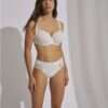 BH met hoge halslijn en grote capaciteit. Surround control-effect zonder opvulling. Ideaal voor grotere maten. Het spectaculaire kantontwerp geeft het tegelijkertijd een romantische en bohemien stijl. Deze BH combineert sensualiteit, frisheid en elegantie, ideaal voor vrije en authentieke vrouwen.