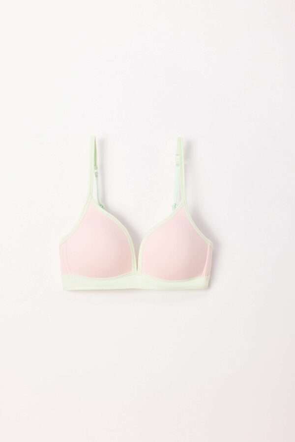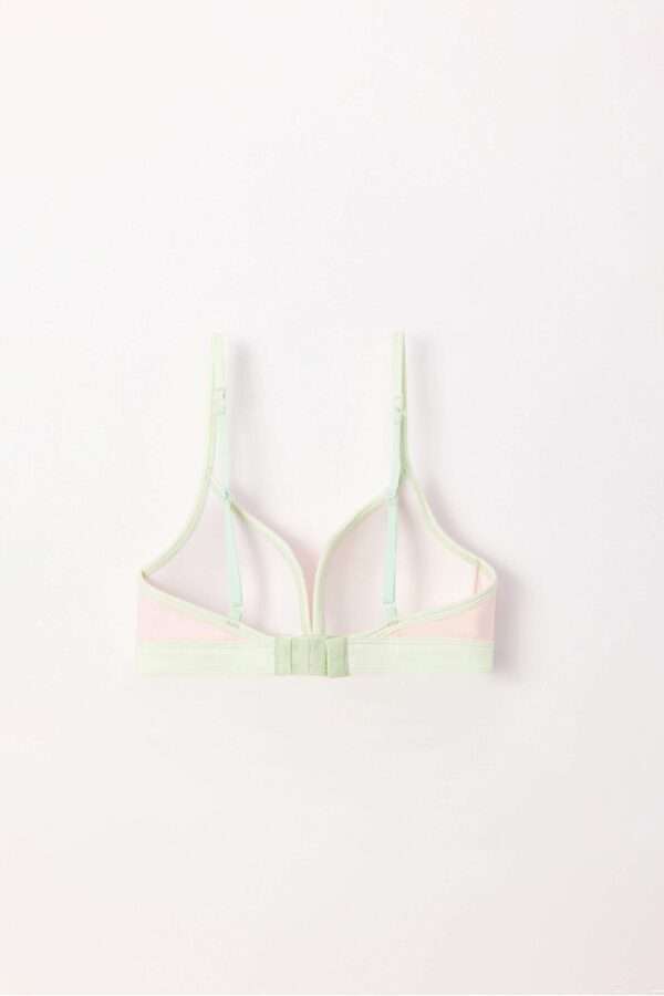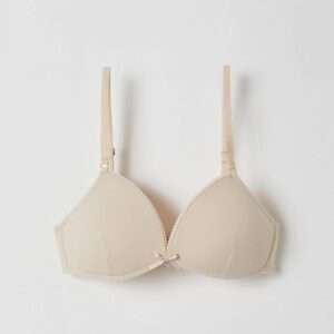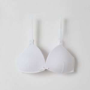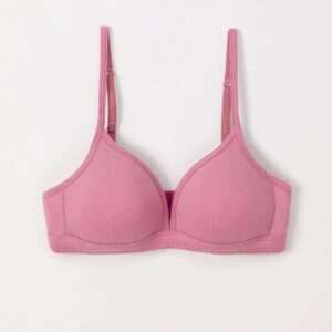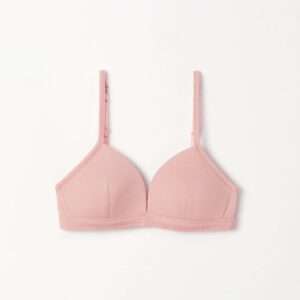 Mauve beugelloze BH van rekbaar, soepel katoen. Dit nieuwe model van Woody heeft gewatteerde cups (niet uitneembaar) en een brede boord onderaan. De sluiting achteraan bestaat uit 2 haakjes die je op 3 posities kan vasthaken. We bieden deze voor de 1ste keer aan in de maten 70 – 75 – 80 in cups A, B. Woody kleuren, comfort en kwaliteit samengevat in 1 BH. Woody, steeds tot jullie dienst.